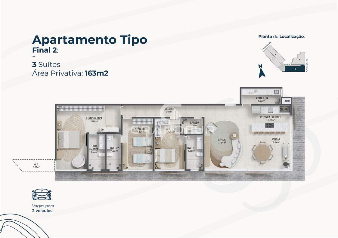 Os apartamentos final 02 do Edifício Caieiras 55 oferece uma experiência única de sofisticação e conforto, com uma planta bem distribuída e vistas privilegiadas para o mar. Com um amplo living, o imóvel conta com sala de estar, sala de jantar e uma cozinha gourmet integrada, perfeita para receber amigos e familiares. São 3 suítes espaçosas, sendo uma delas a suíte master, projetada para garantir máximo conforto e privacidade. O apartamento ainda dispõe de lavanderia, lavabo e todo o charme e exclusividade que o Edifício Caieiras 55 proporciona. Aproveite tudo o que o empreendimento tem a oferecer, com o melhor em qualidade de vida, segurança e localização privilegiada.