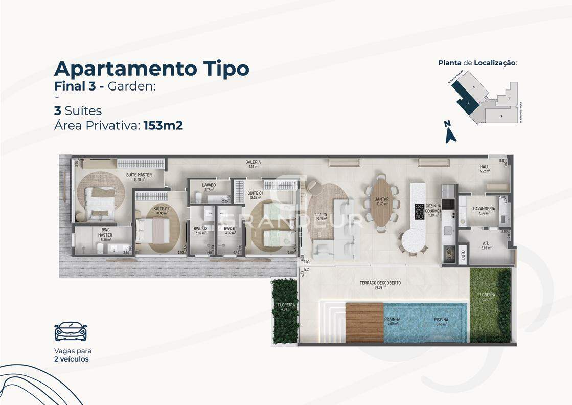 Área Privativa: 153,35m² Área Total: 254,00