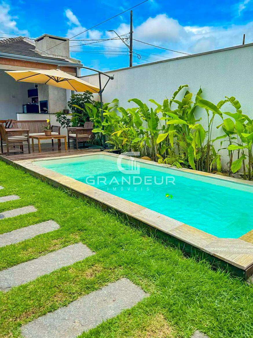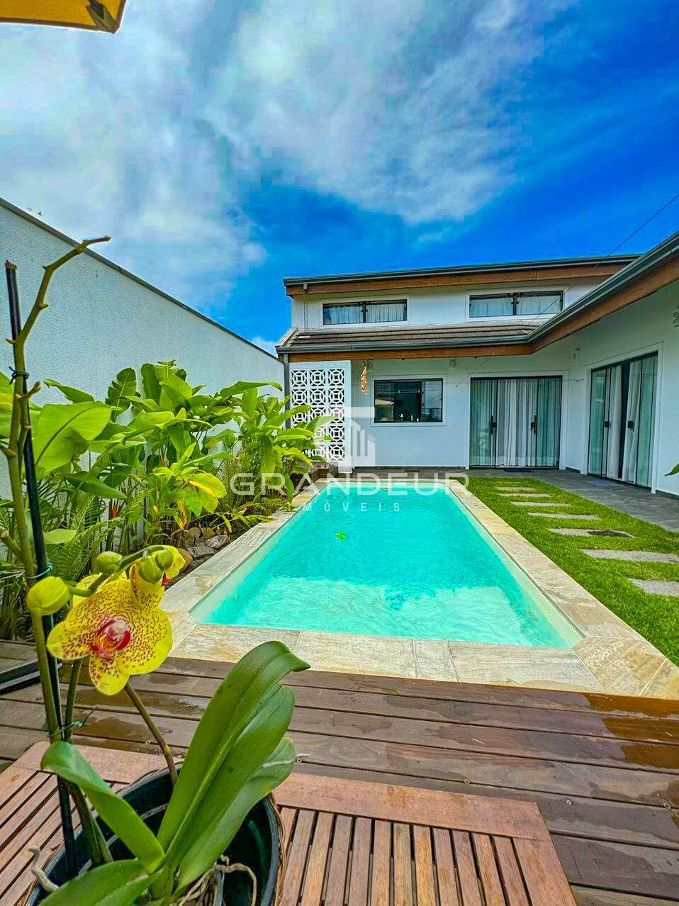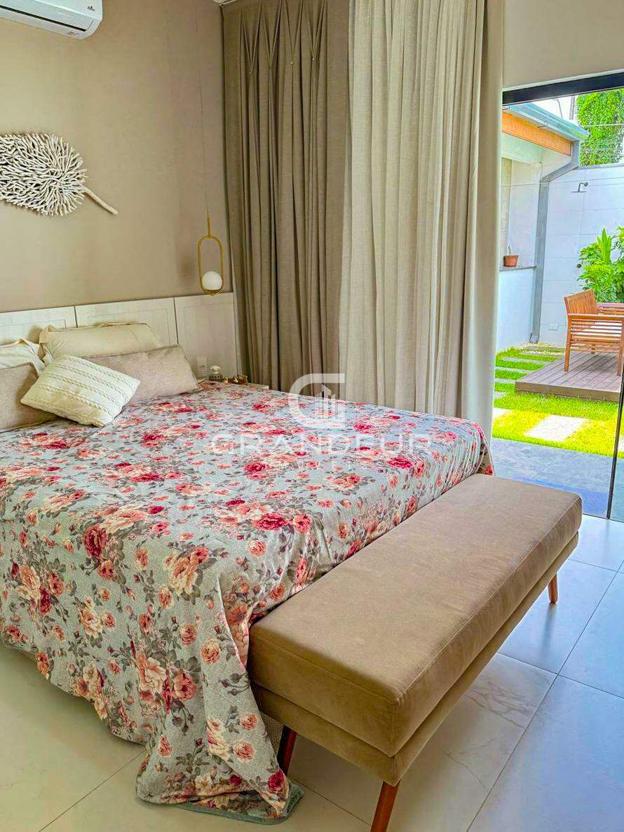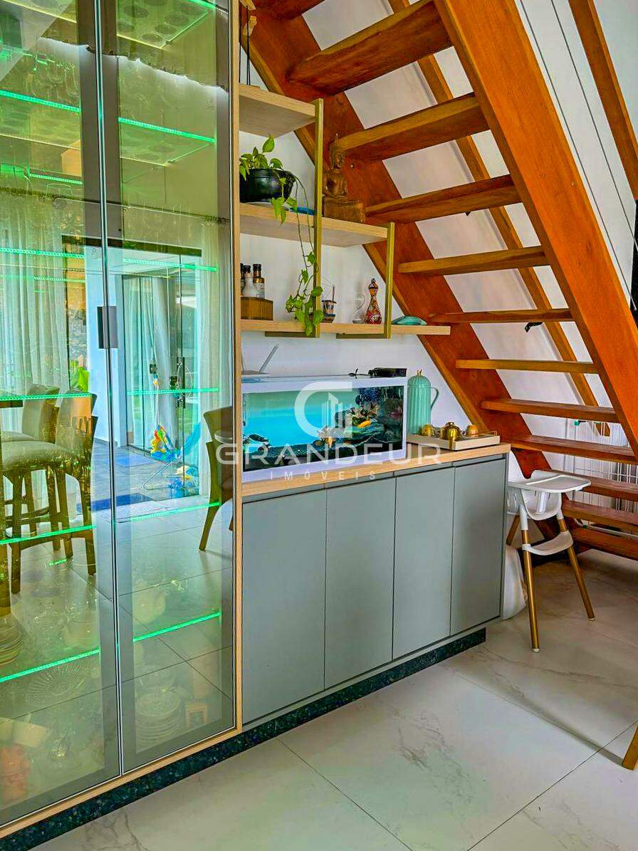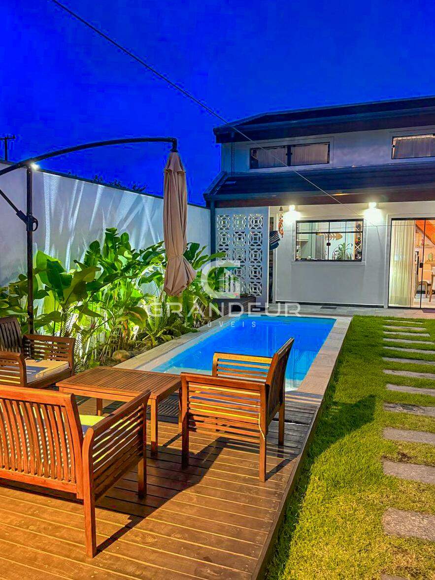 O mezanino é o ponto alto da casa, ideal para um escritório, sala de TV ou espaço de lazer, proporcionando ainda mais amplitude e charme ao ambiente. A área externa é um verdadeiro convite ao relaxamento, com uma piscina perfeita para os dias de calor e uma churrasqueira para receber amigos e familiares com estilo.