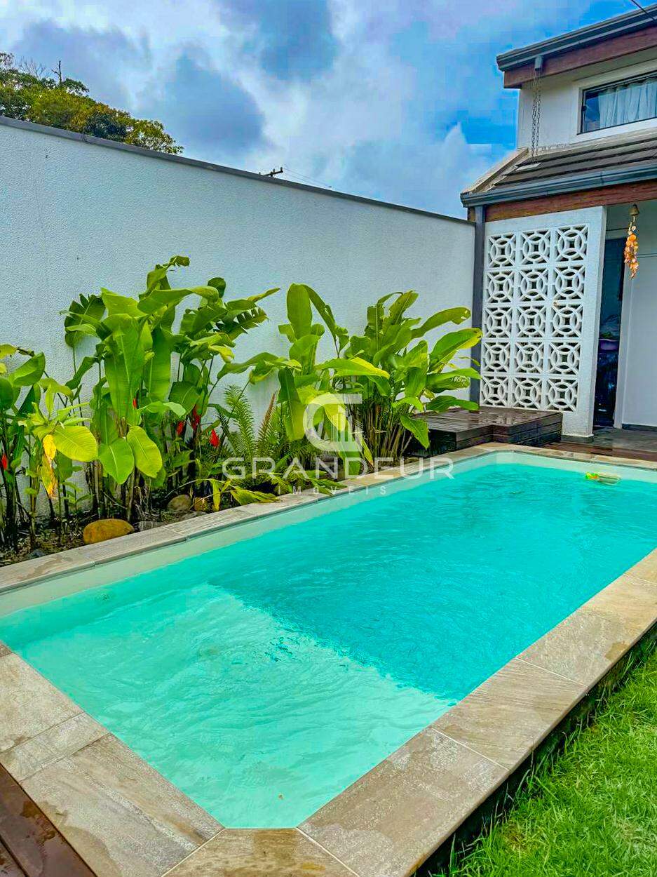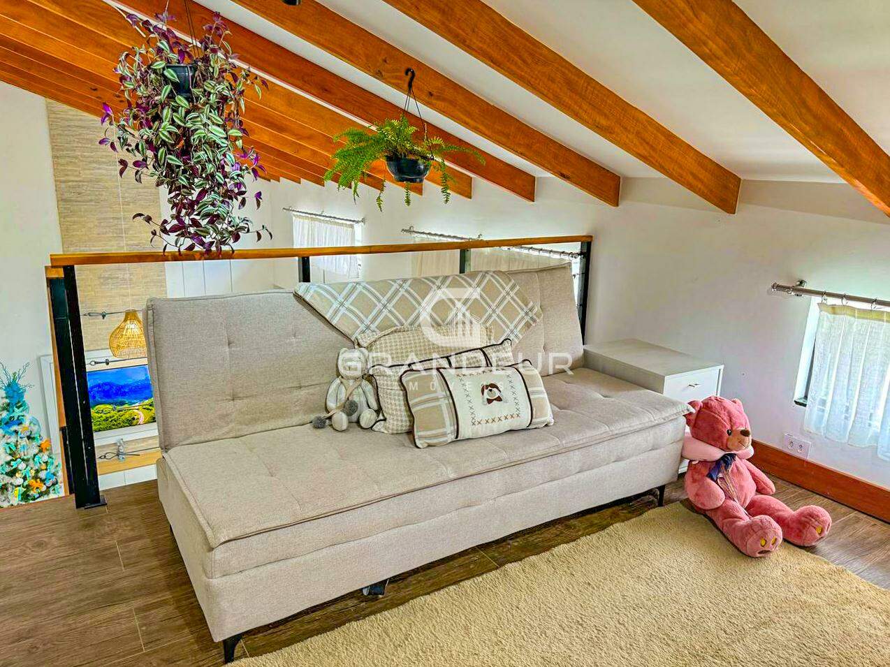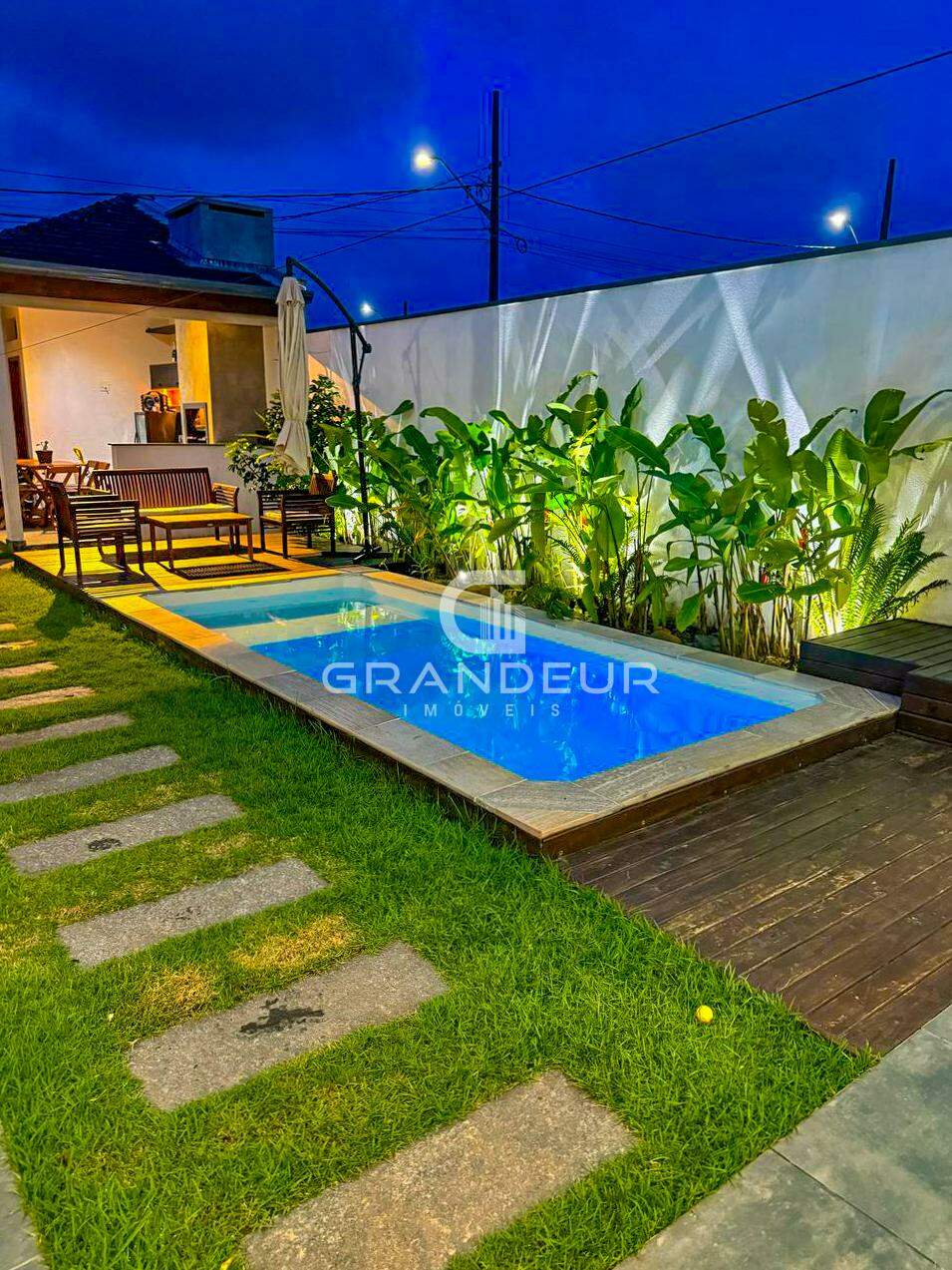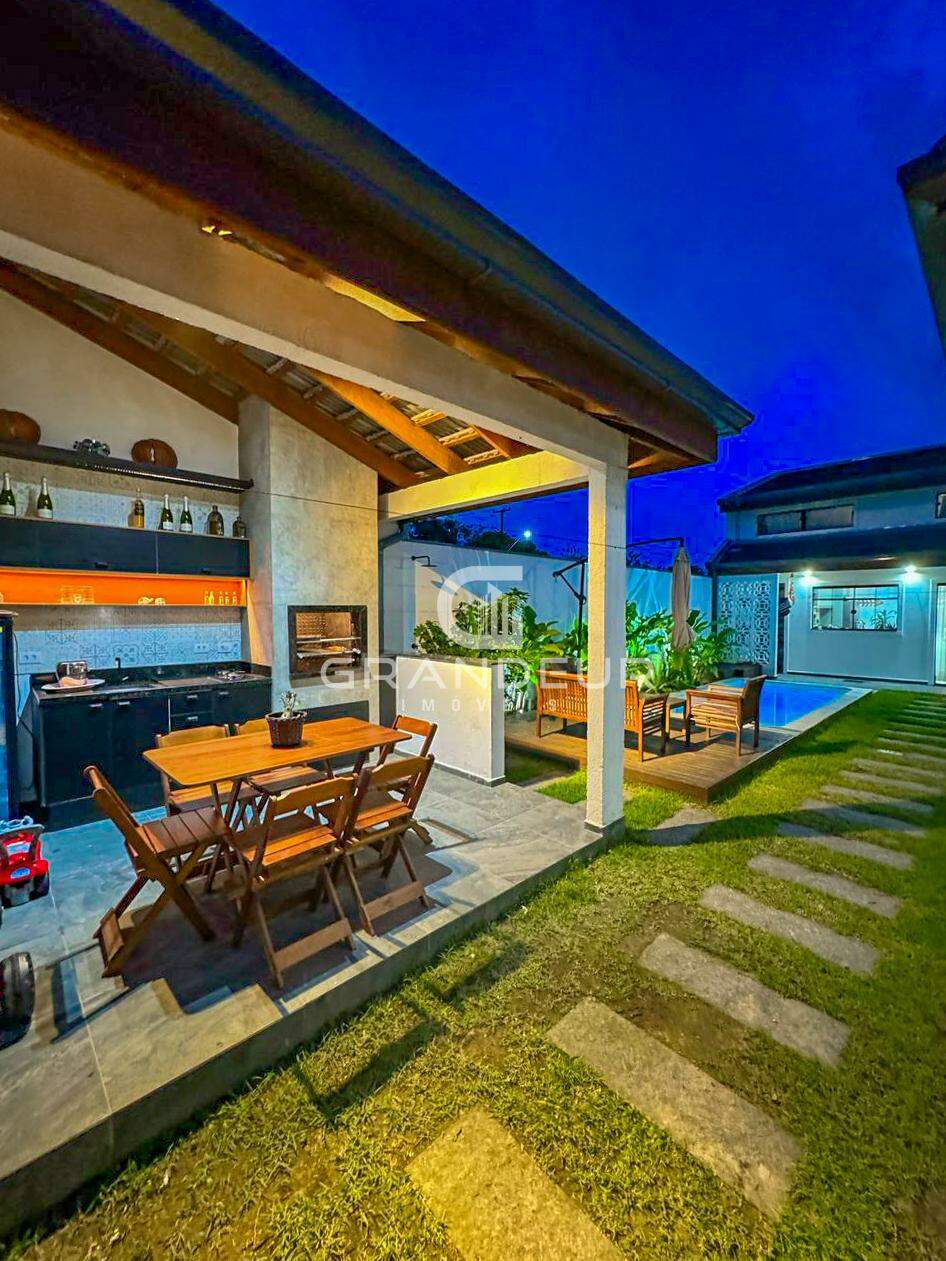 O mezanino é o ponto alto da casa, ideal para um escritório, sala de TV ou espaço de lazer, proporcionando ainda mais amplitude e charme ao ambiente. A área externa é um verdadeiro convite ao relaxamento, com uma piscina perfeita para os dias de calor e uma churrasqueira para receber amigos e familiares com estilo.