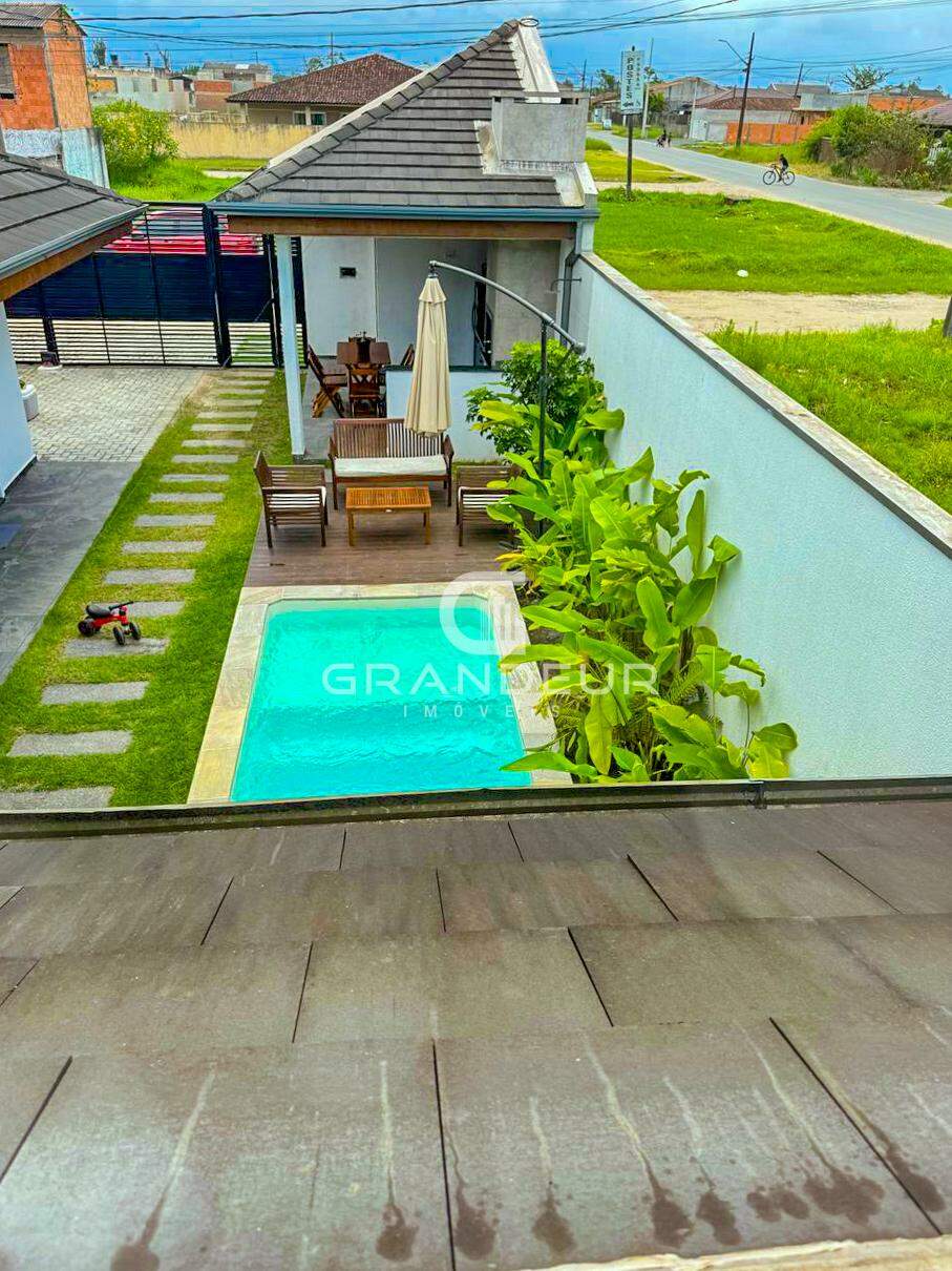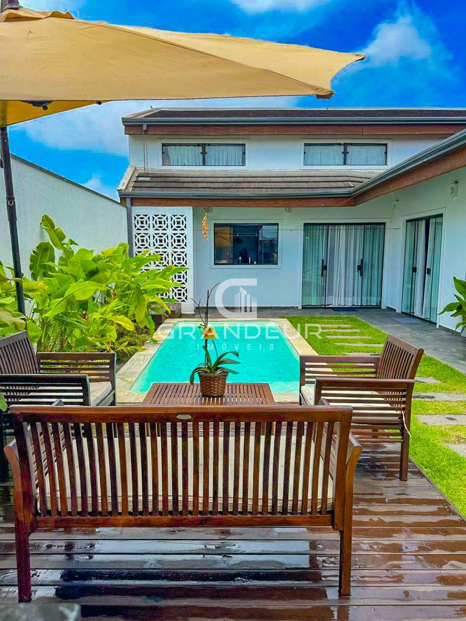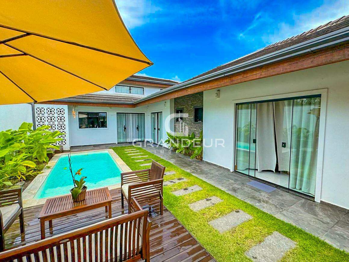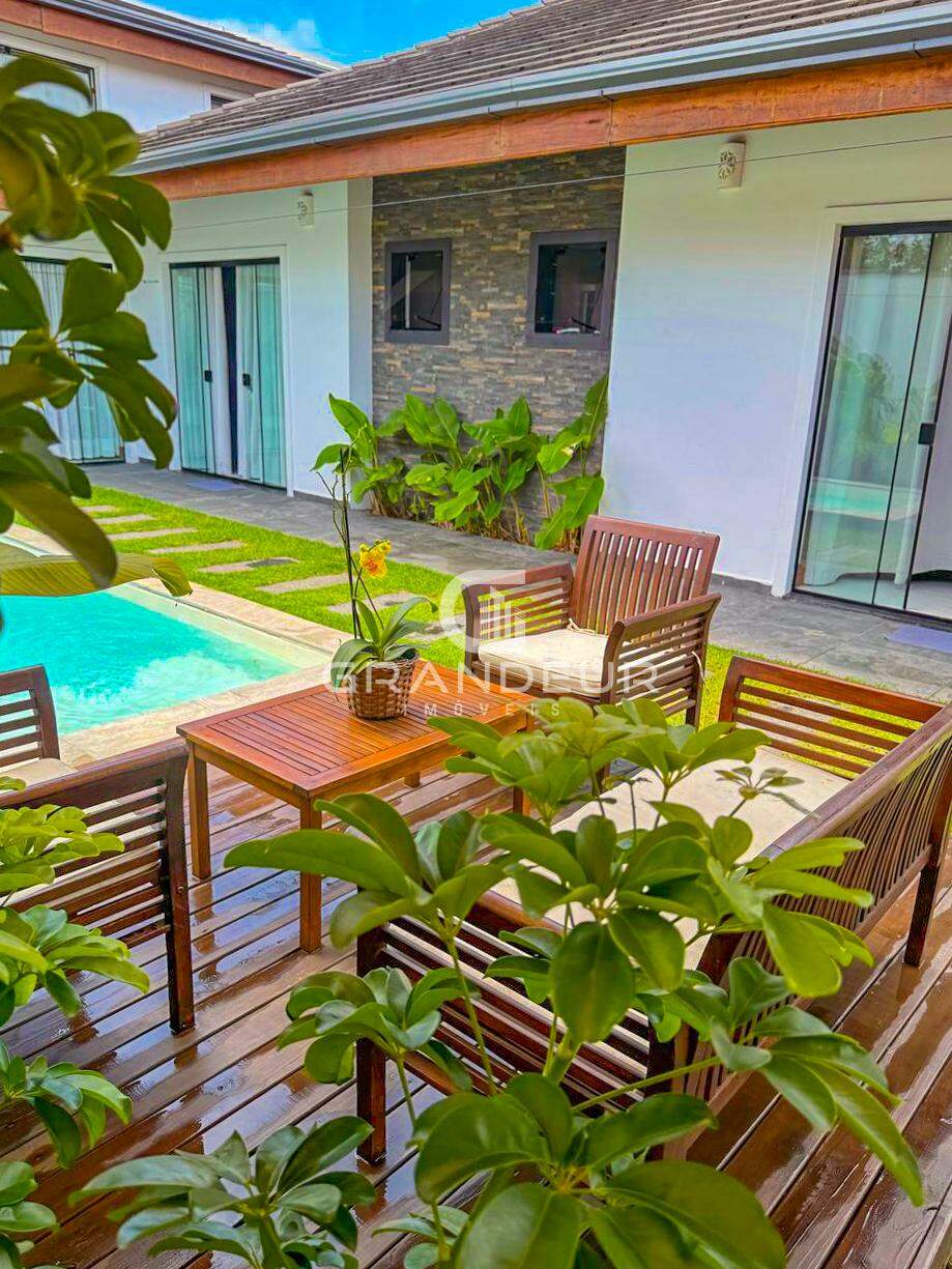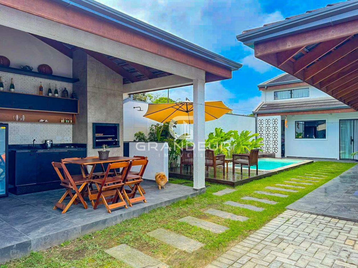 O mezanino é o ponto alto da casa, ideal para um escritório, sala de TV ou espaço de lazer, proporcionando ainda mais amplitude e charme ao ambiente. A área externa é um verdadeiro convite ao relaxamento, com uma piscina perfeita para os dias de calor e uma churrasqueira para receber amigos e familiares com estilo.
