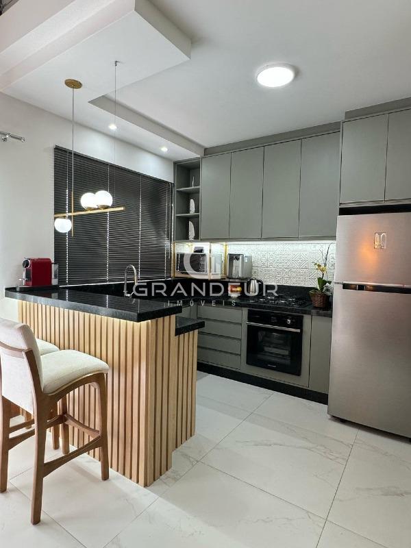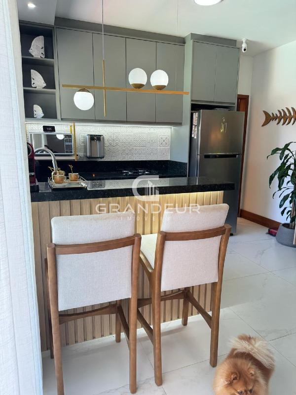 A área social integra sala, cozinha e espaço de convivência, proporcionando amplitude e iluminação natural.