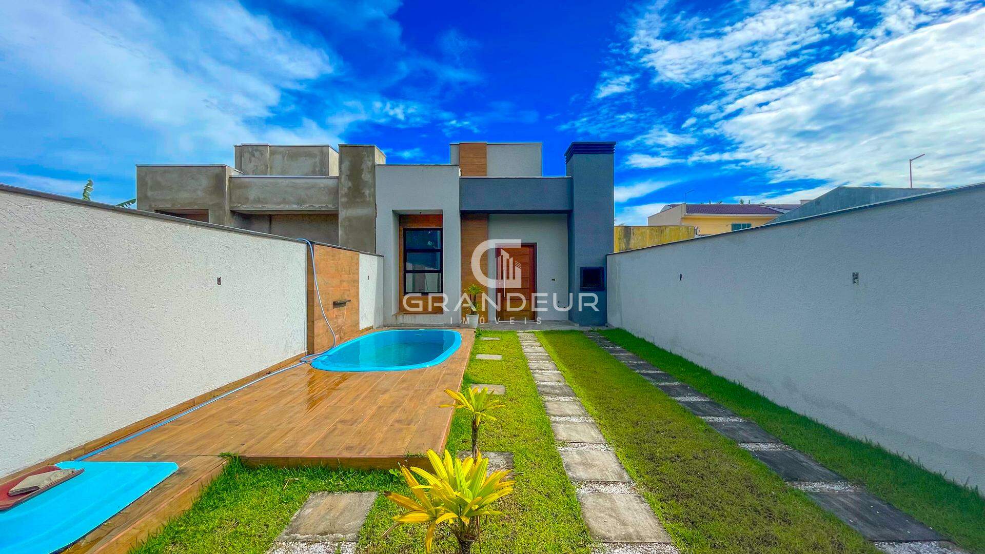 Casa nova à venda no Balneário Eliana, em Guaratuba/PR, com 3 dormitórios, sendo 1 suíte, 1 banheiro, 3 vagas de garagem e sala ampla. Construída em 2023, conta com 80 m² de área privativa em um terreno de 180 m². Os acabamentos incluem esquadrias de alumínio, porcelanato e textura projetada/grafiato. A residência dispõe de cozinha, copa, área de serviço e infraestrutura com esgoto. Para o lazer, oferece piscina privativa. Localizada próxima a farmácias e panificadoras, a propriedade está devidamente averbada e pode ser financiada.