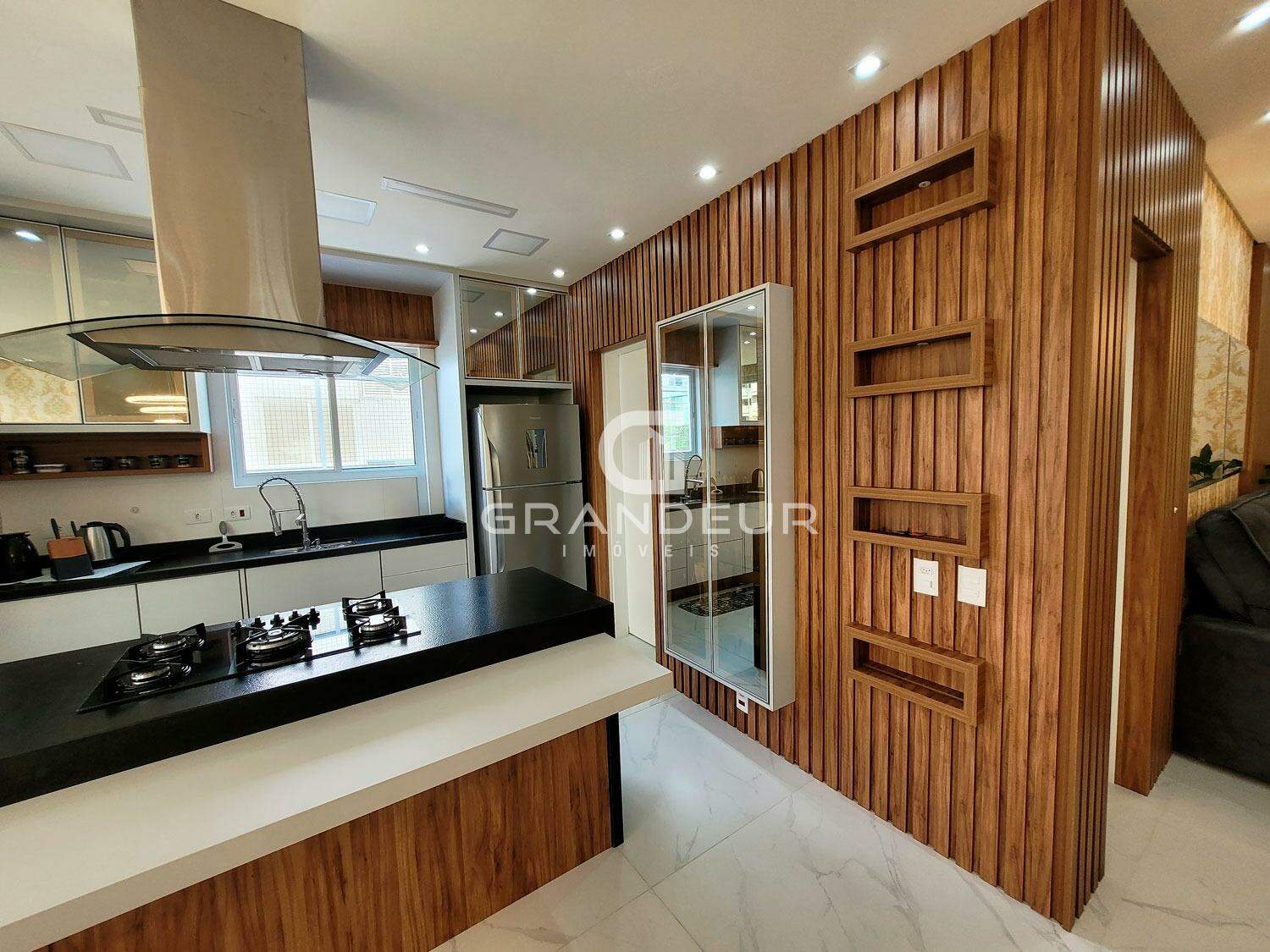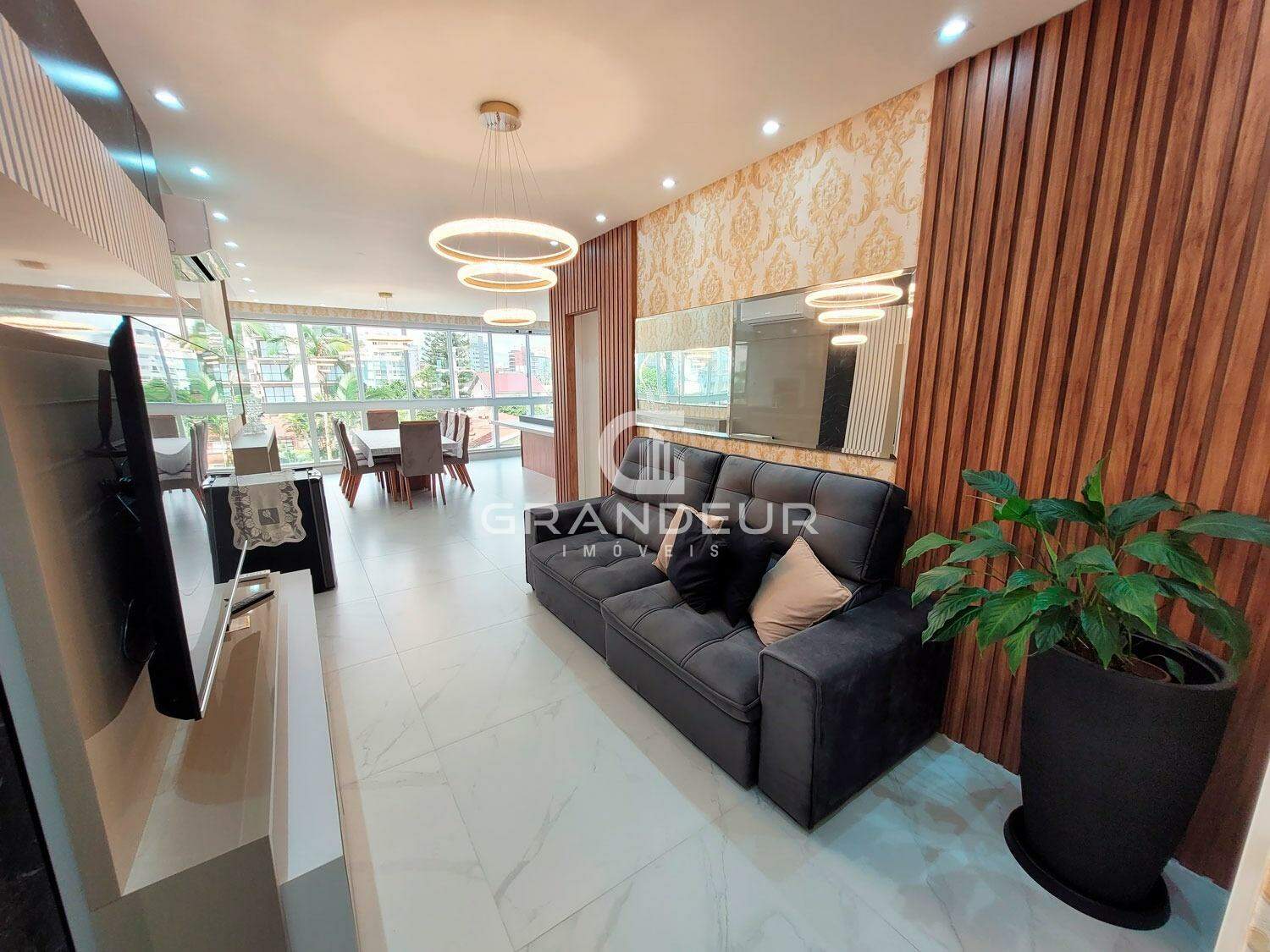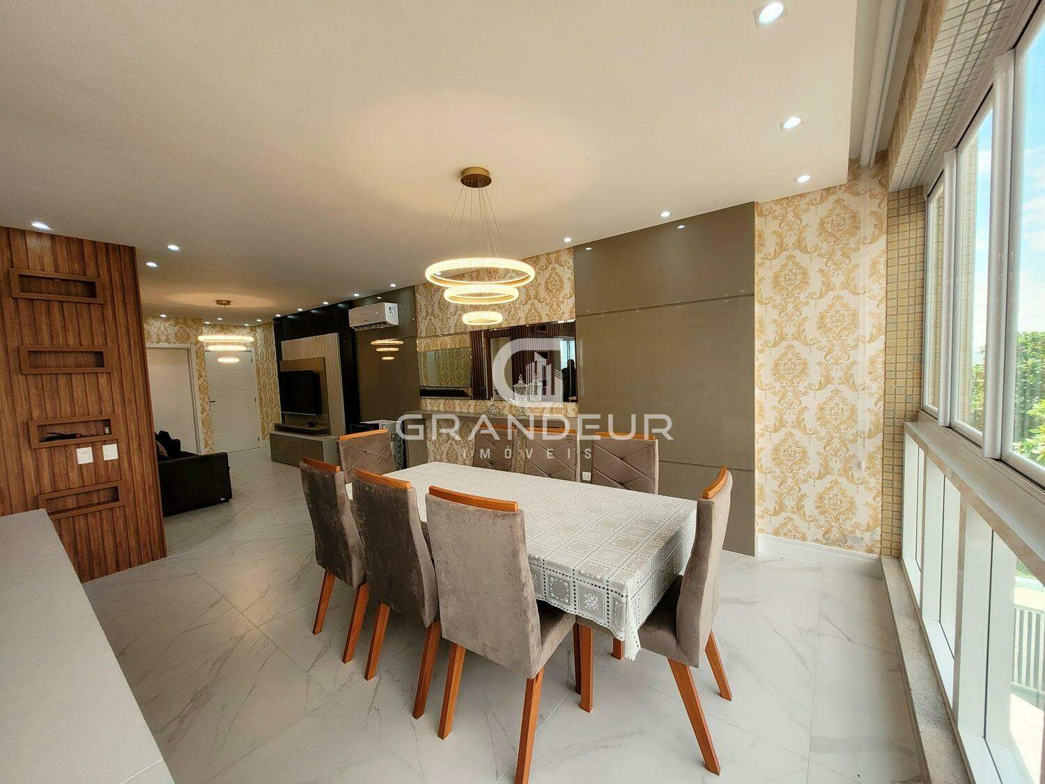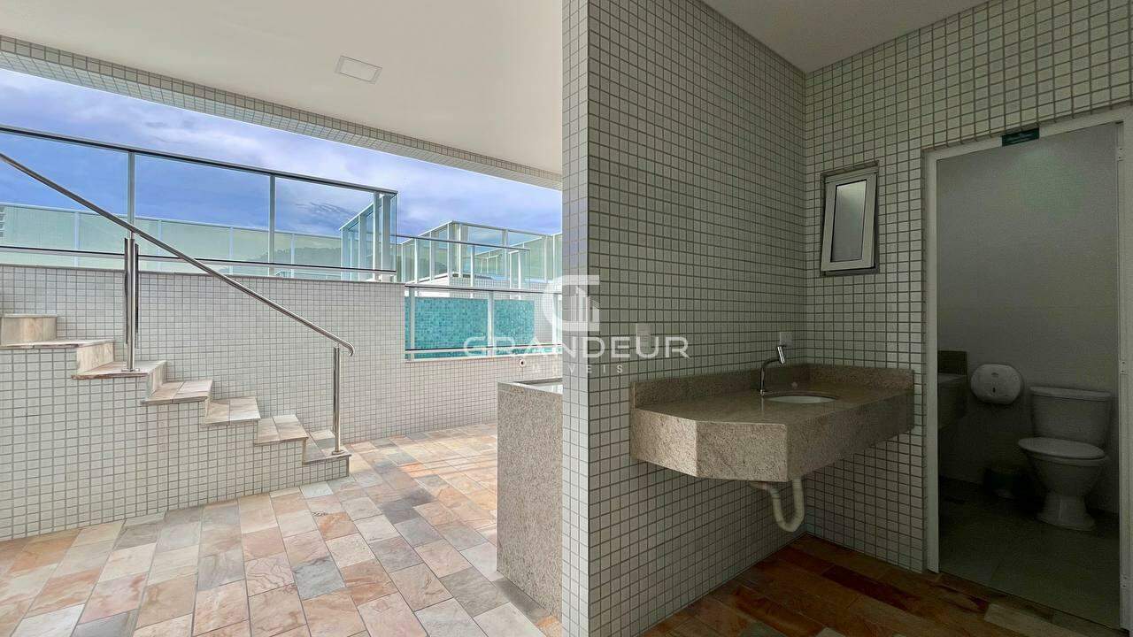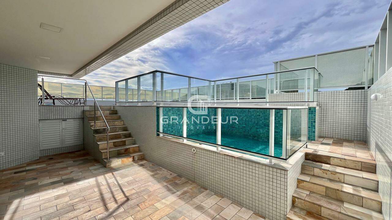 O apartamento é composto por 3 suítes, ambiente social integrado com churrasqueira gourmet e vista para o mar, janelas com sistema heiki, lavabo, área de serviço, quartos com sacada integrada, banheiro social, box praia e 2 vagas de garagem.