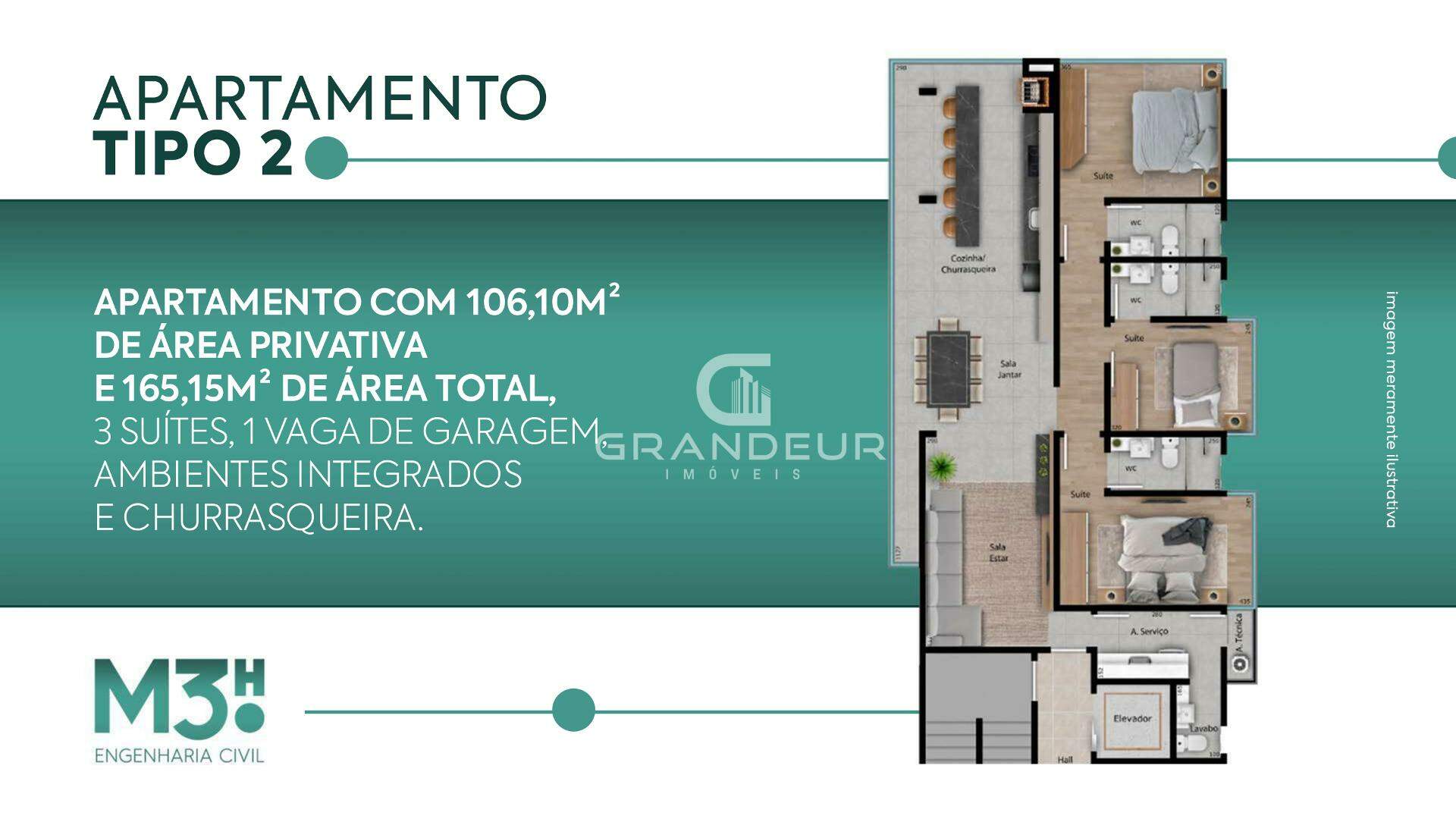 Os apartamentos de final 02 terão 165,15 m² de área total, com 3 suítes, uma sala de estar integrada à cozinha, lavabo e 1 vaga de garagem. Além disso, o Le Majestic contará com um salão de festas, uma academia moderna e uma área de lazer com piscina, oferecendo uma infraestrutura completa para o conforto e a qualidade de vida dos seus moradores.