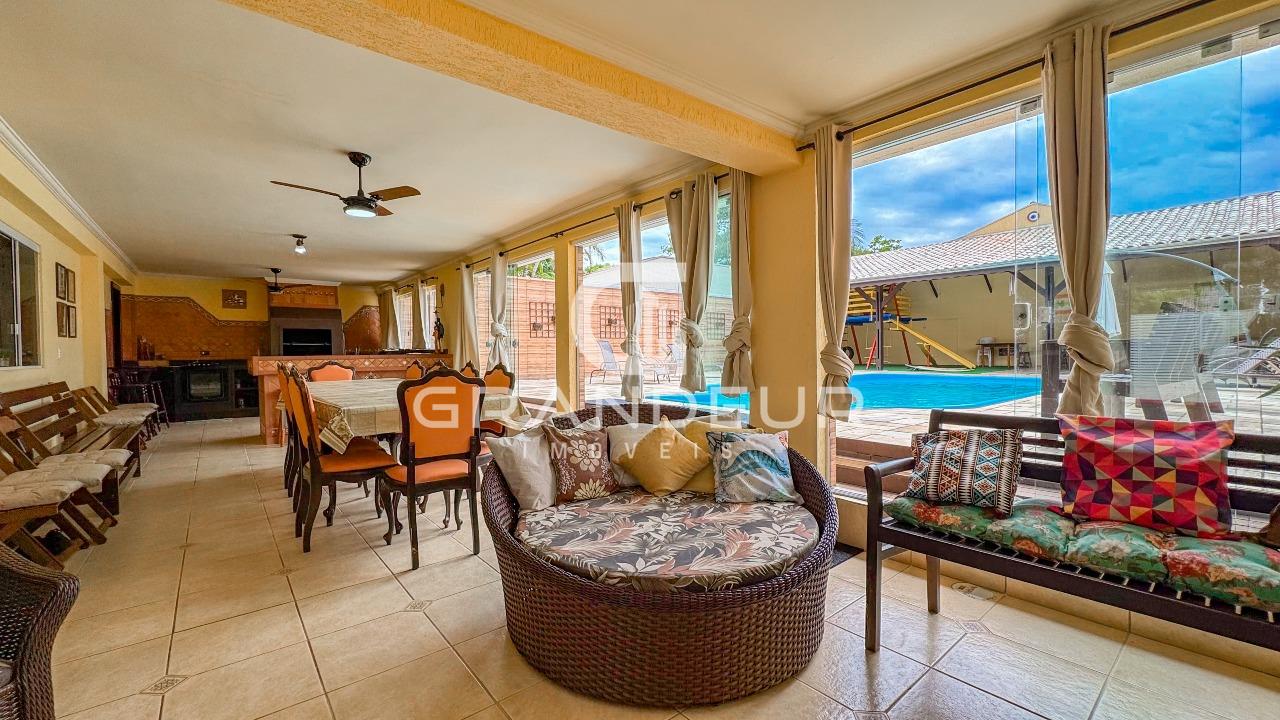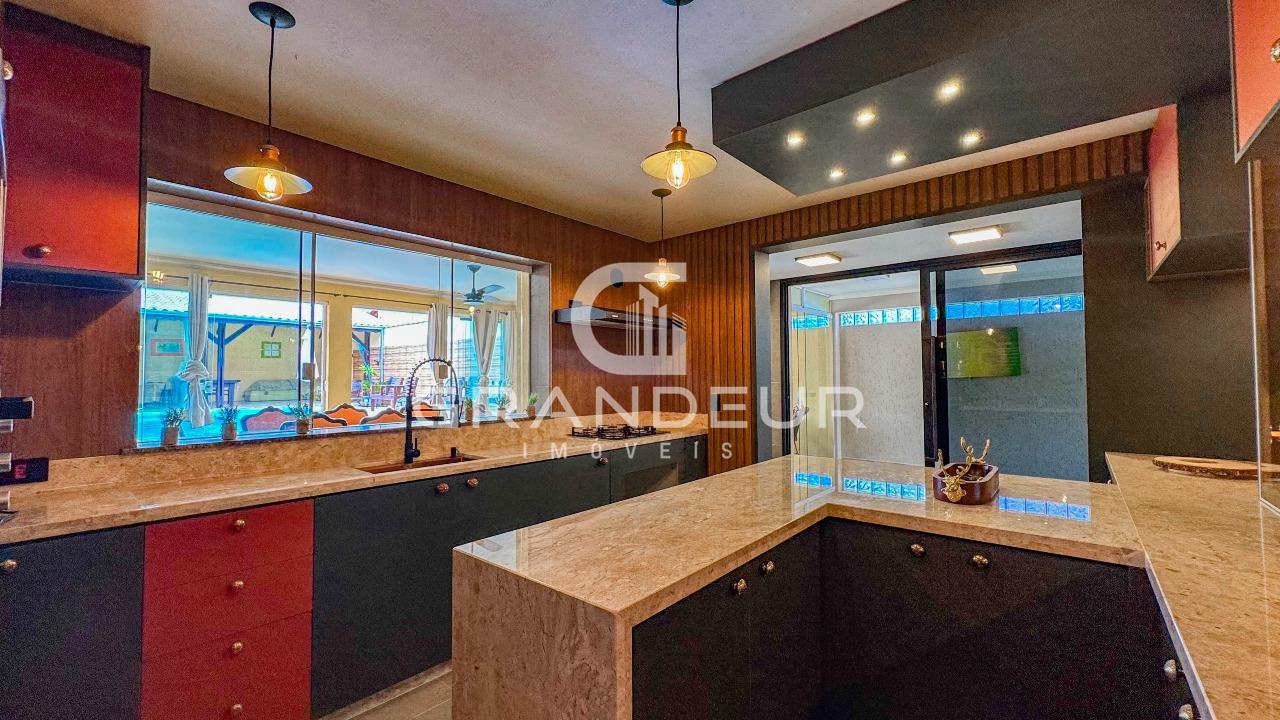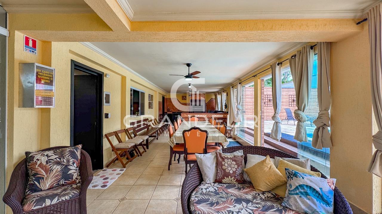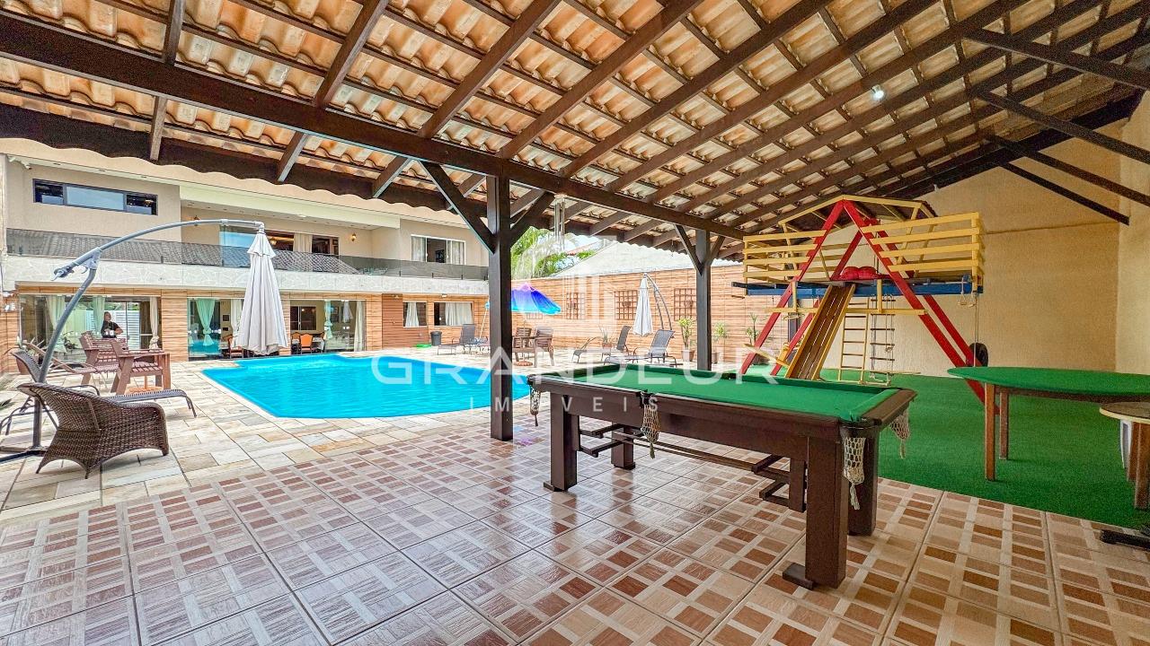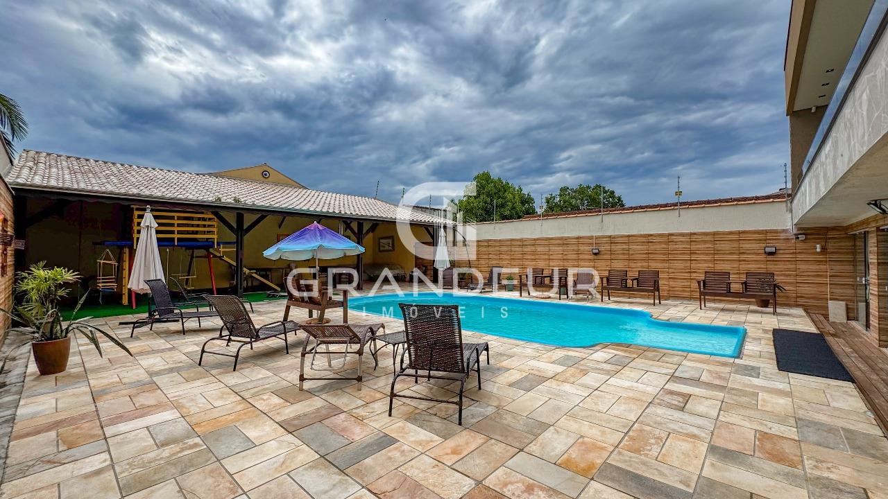 A área de lazer é um verdadeiro destaque desta propriedade. O espaço gourmet integrado apresenta uma churrasqueira completa e uma mesa de jantar para 8 pessoas, criando o ambiente perfeito para refeições ao ar livre com amigos e familiares. Ao lado, uma piscina convida para momentos de relaxamento e diversão.