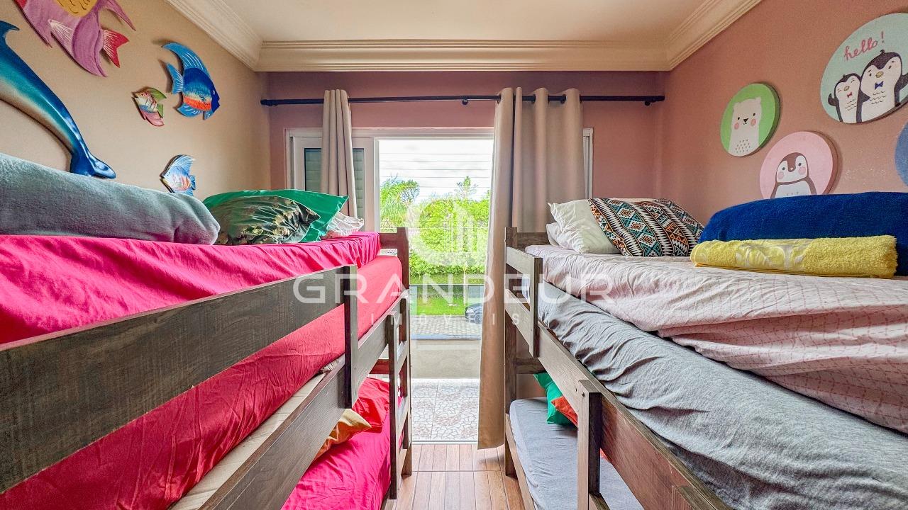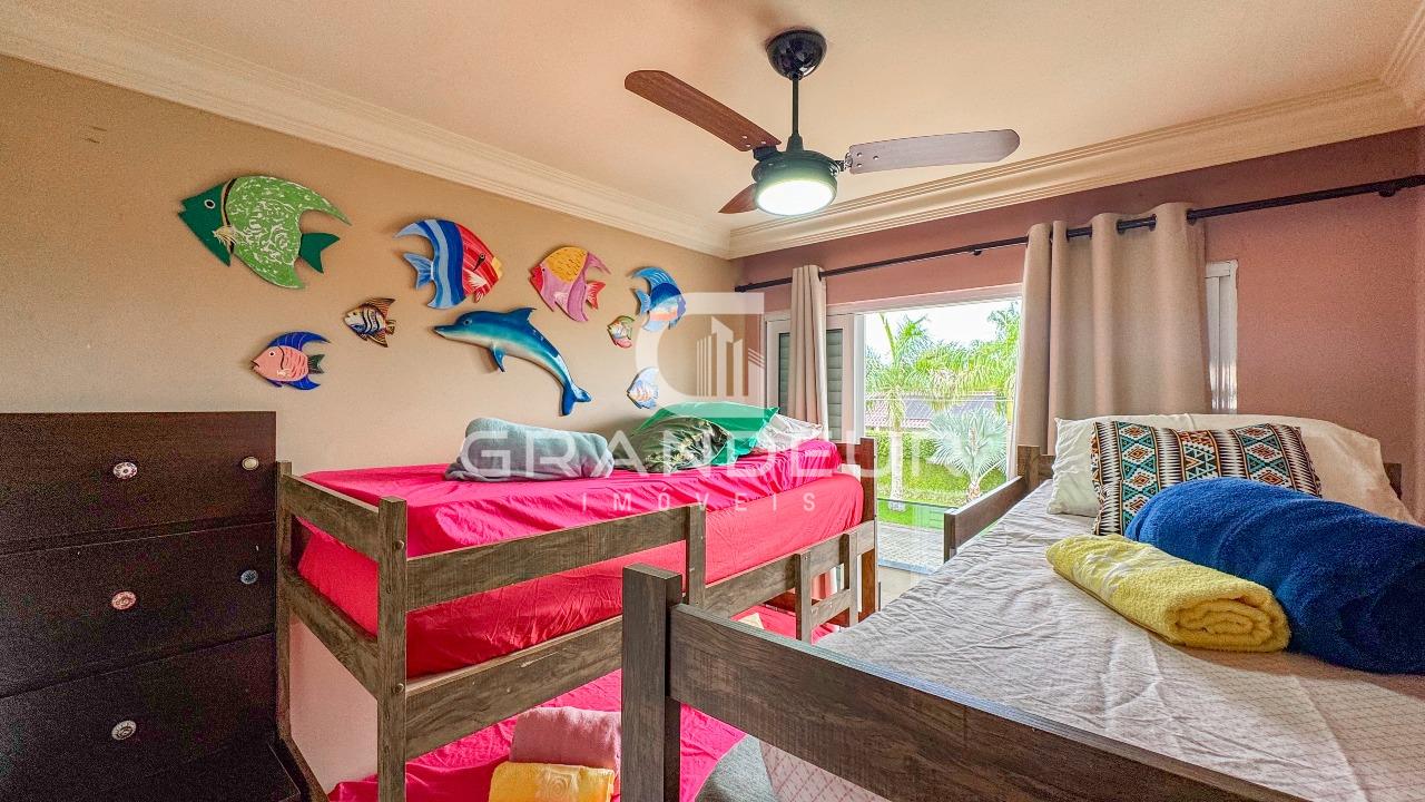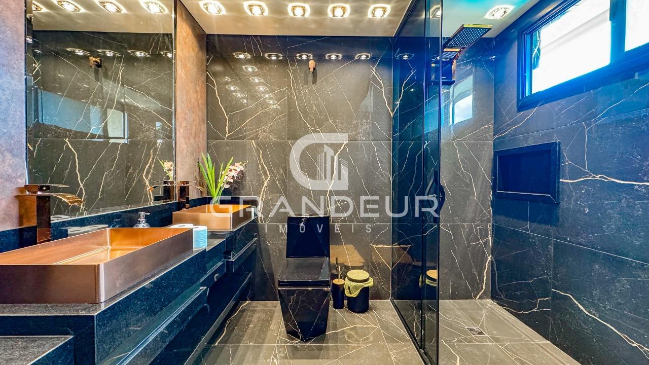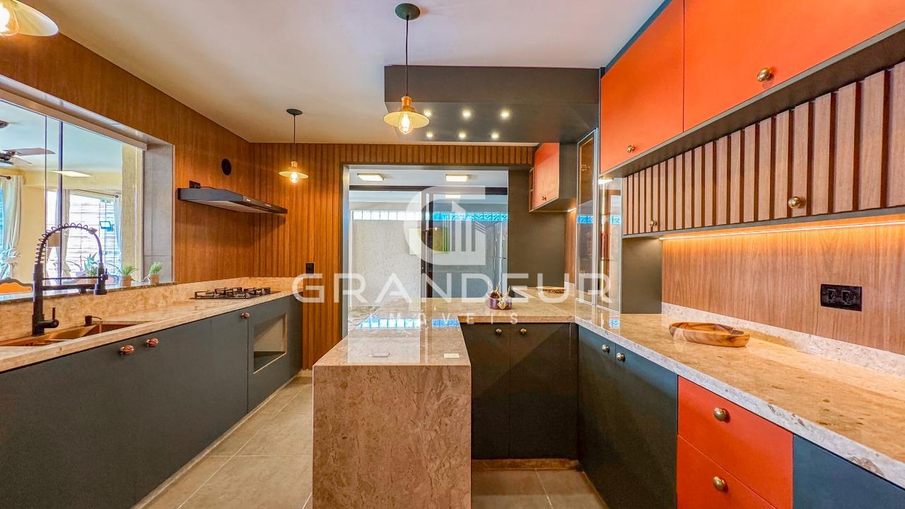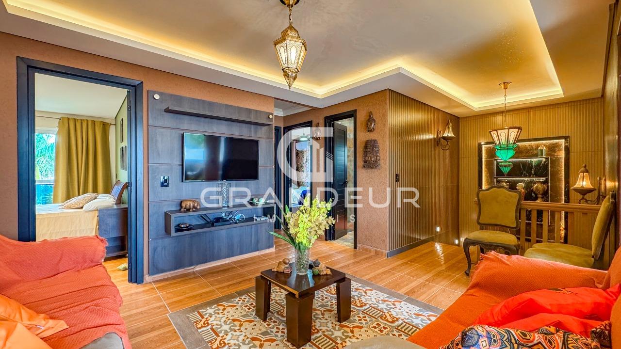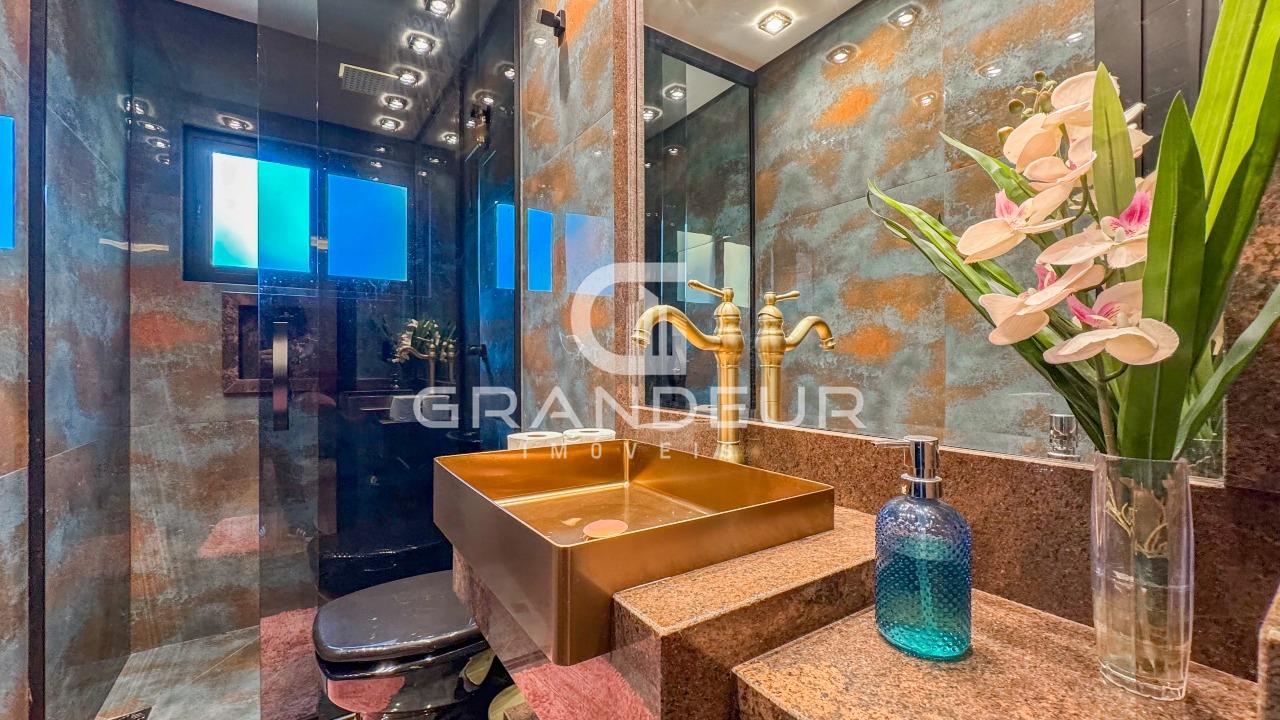 A residência possui 5 dormitórios espaçosos, sendo 3 suítes luxuosas com sacada privativa, onde você pode apreciar a vista deslumbrante dos arredores. Além disso, há um lavabo para maior conveniência dos moradores e visitantes.