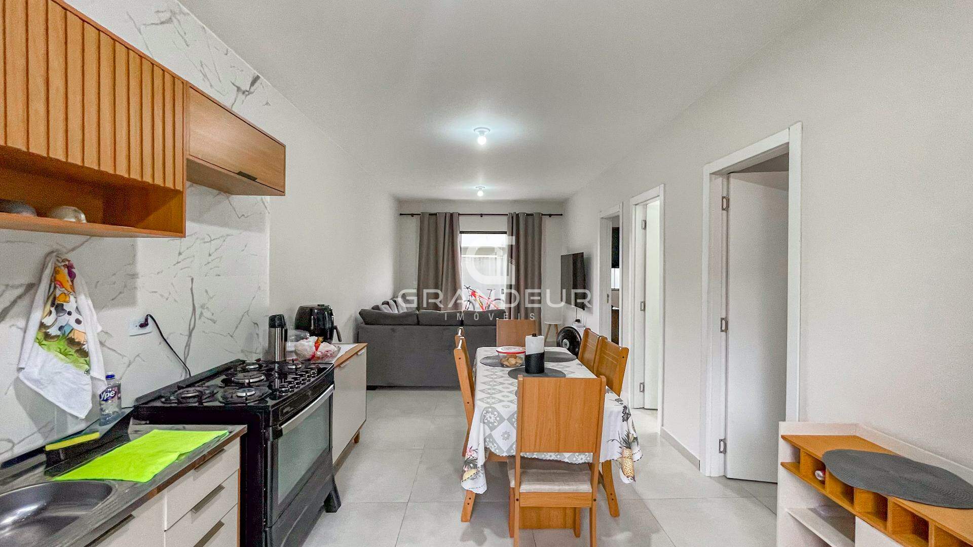 São 2 quartos, perfeitos para acomodar sua família com conforto. O banheiro social é bem distribuído e atende às necessidades do dia a dia. A sala de estar é acolhedora, ideal para relaxar ou receber visitas. A cozinha é moderna e equipada, e a mesa de jantar complementa o ambiente, proporcionando momentos agradáveis em família.