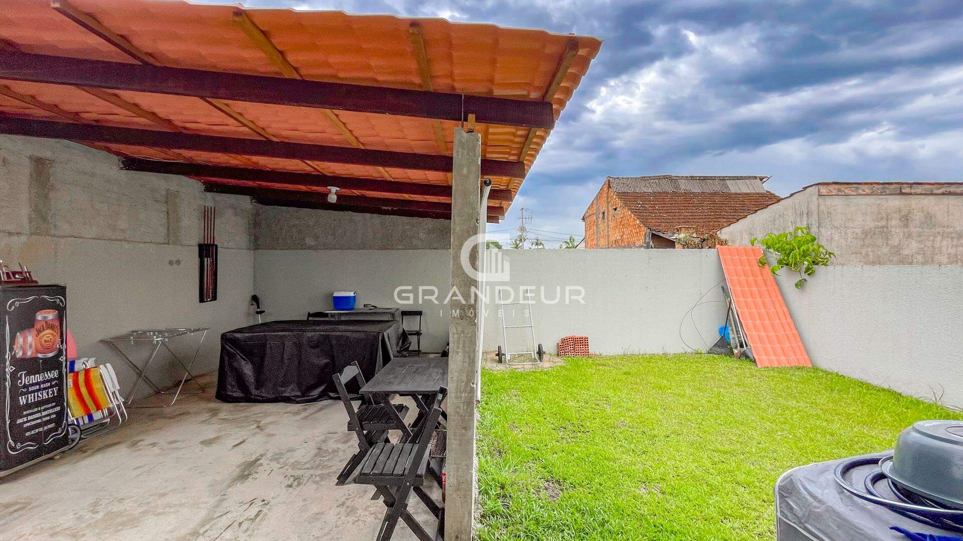 A casa foi construída com laje, o que garante maior segurança e isolamento térmico. A área de lazer coberta oferece um ótimo espaço para confraternizações, e ainda há espaço suficiente para a instalação de uma piscina, tornando o local perfeito para seus momentos de lazer e descanso.